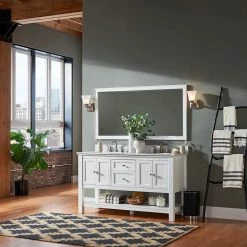 Home Decorators Collection 36 in. W x 32 in. H Framed Rectangular Bathroom Vanity Mirror in White