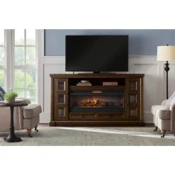 Home Decorators Collection Caufield 54 in. Freestanding Electric Fireplace TV Stand in Honey Ash