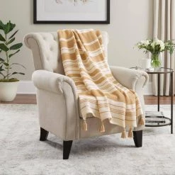 Home Decorators Collection Light Brown Stripe Turkish Cotton Textured Throw Blanket with Tassels
