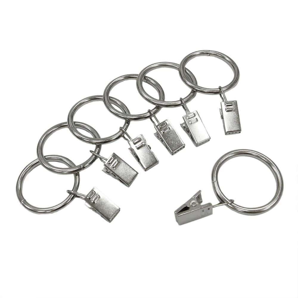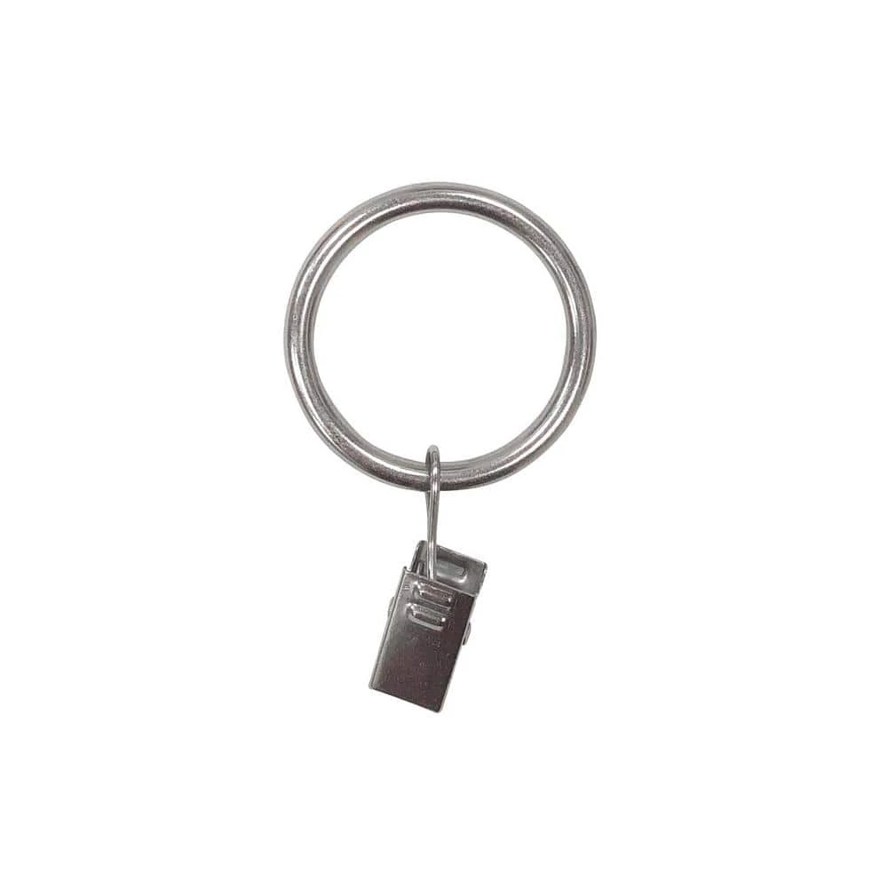 The Home Decorators Collection Brushed Nickel Clip Ring set fits curtain rods up to 1 in. Dia. A handy solution for bypassing a panel pocket that is too small for the rod, these clip rings are easy to use by simply clipping them onto a drapery panel. Finished in an elegant brushed nickel that will coordinate with the brushed nickel rod set, these clips work in any room of your home and make opening and closing your drapery panels quick and effortless.