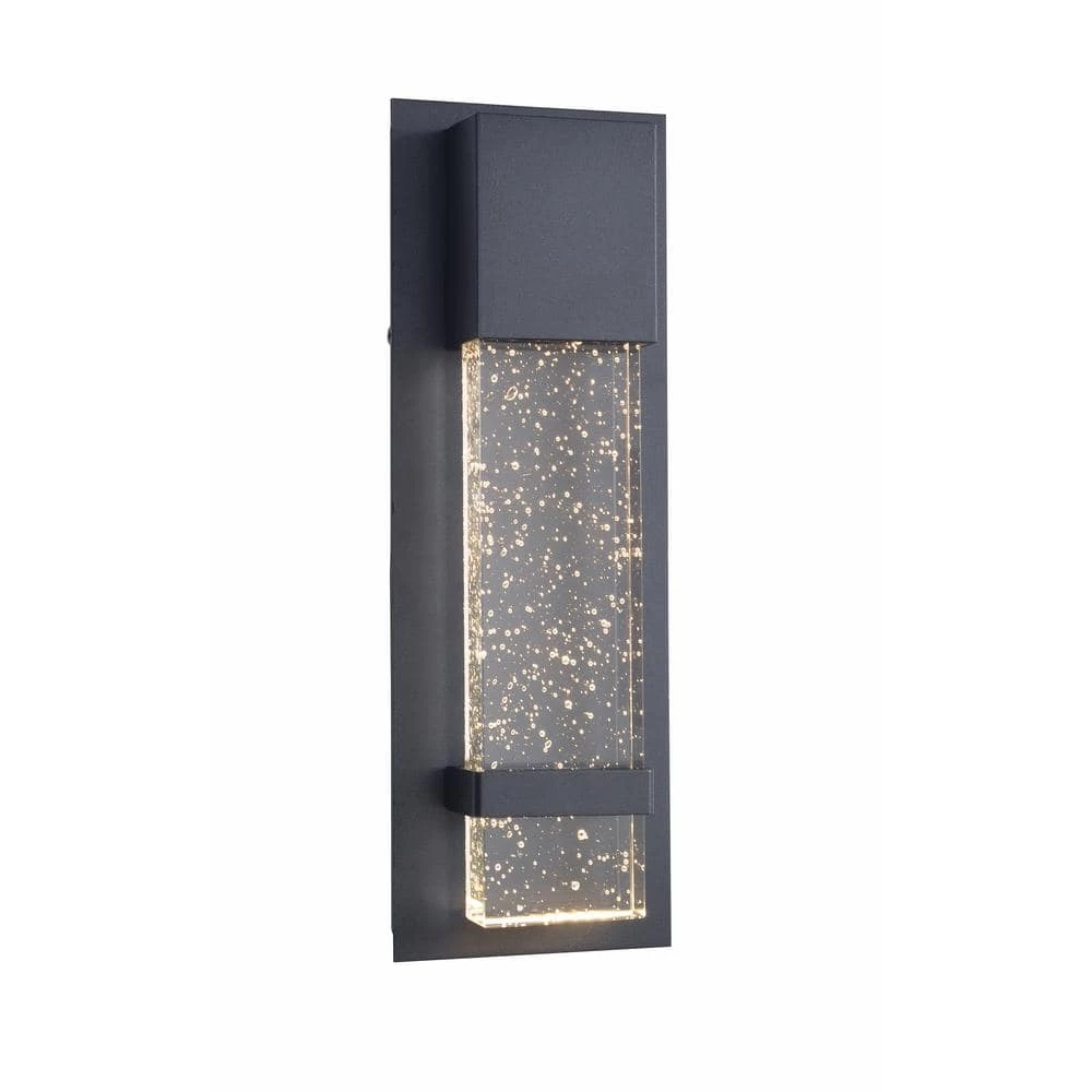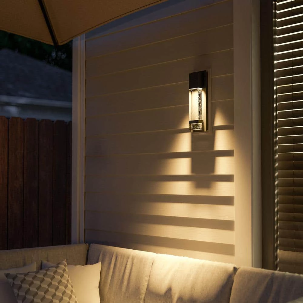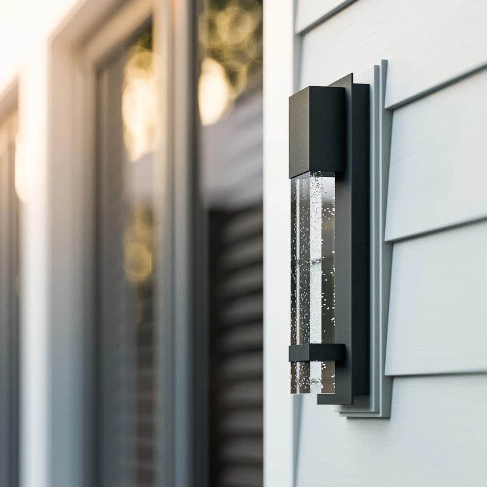This wall lantern features a height of 14 in. and a width of 5 in., giving you a sizable light for your outdoor space. Comprised of an aluminum steel composite, the black finish of this lantern pairs with the long piece of seeded glass for a sleek, modern look. With an LED light, you’ll have a bright glow wherever you place this light; whether its on your front porch or on your back deck. With a clean modern profile, this light brings plenty of style and function into your space. You’ll have no worries on bumping into your door while you bring the dog in during the night.