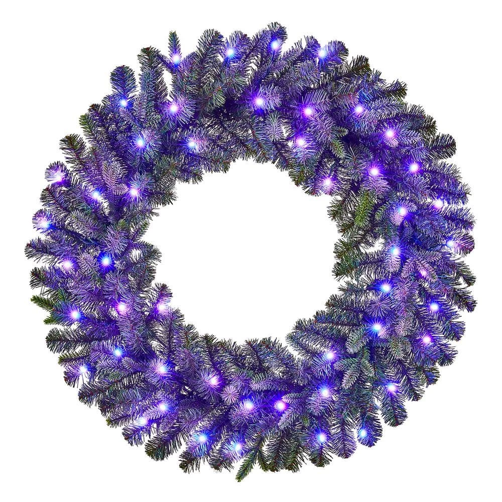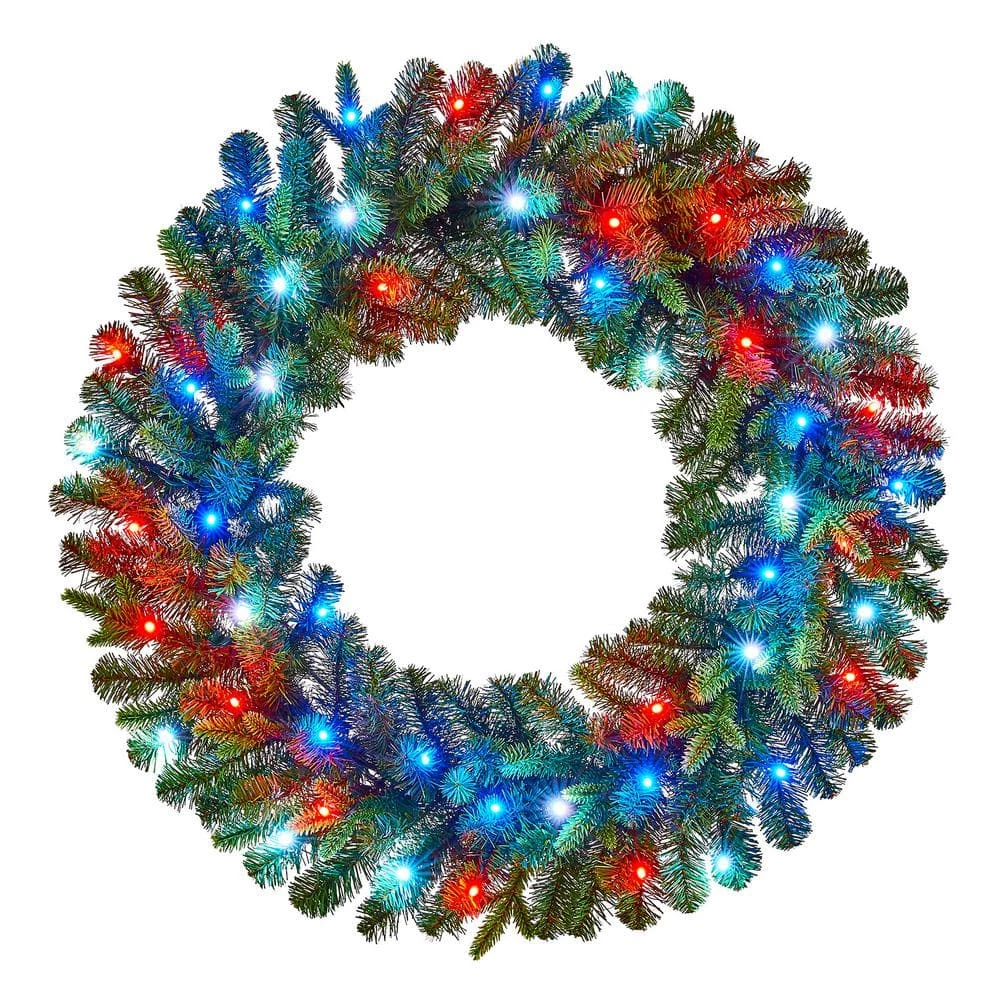 Create a cozy Christmas welcome with this Swiss Mountain pre-lit artificial spruce wreath. Lit with 50 app-controlled Twinkly RGB LED bulbs, this wreath emits a joyful glow upon your indoor or covered outdoor spaces. The generous 30-inch diameter greets your guests with an eye-catching touch of greenery. This Swiss Mountain pre-lit artificial spruce wreath features 224 artificial spruce tips, supplying a lush, realistic look with plenty of room for personal decorative additions.