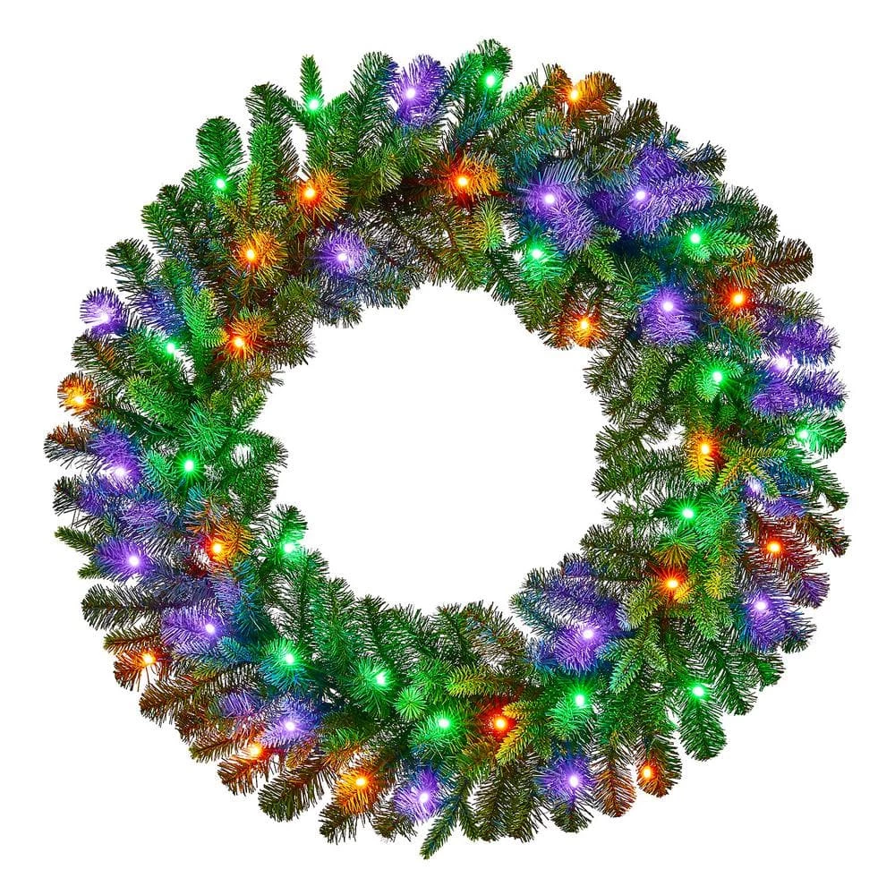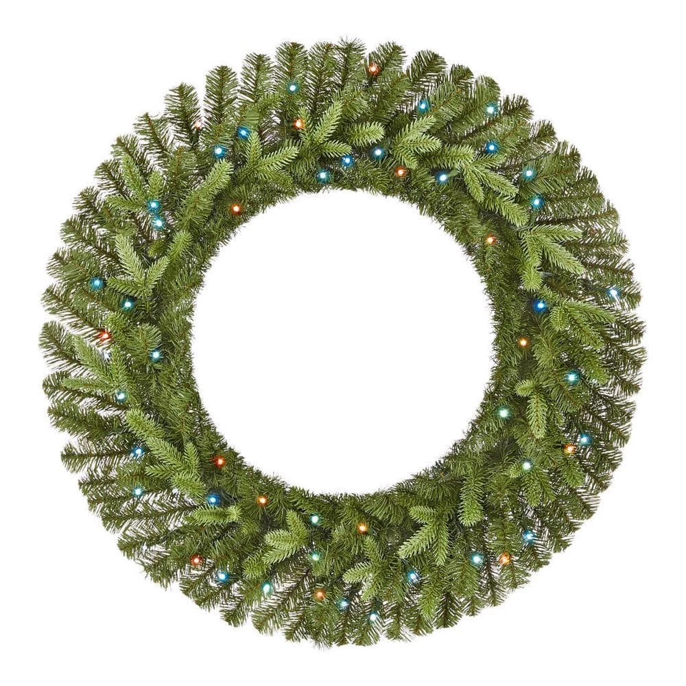 - Includes round pre-lit artificial spruce wreath