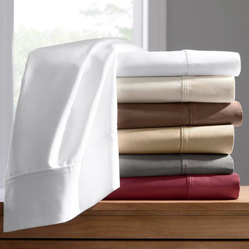 Our Home Decorators Collection 400 Thread Count Cotton Sateen Sheet Set has everything you need for the perfect night’s sleep. These 100% cotton sateen sheets are wrinkle resistant and low pilling, which means they will stay soft and smooth after each use and wash. These cotton sateen sheets also features Flexi Fit technology on the fitted sheet, ensuring it fits snug and tight around your mattress. It also helps you quickly identify the top and bottom ends of the fitted sheet for easy placement on the mattress. Fitted sheet fits mattresses anywhere from 8 inches to 20 inches. You can be confident in your purchase as these 400 thread count cotton sateen sheets are certified STANDARD 100 by OEKO-TEX, meaning they have been independently tested for harmful substances according to strict scientific criteria that go beyond global legal regulations.