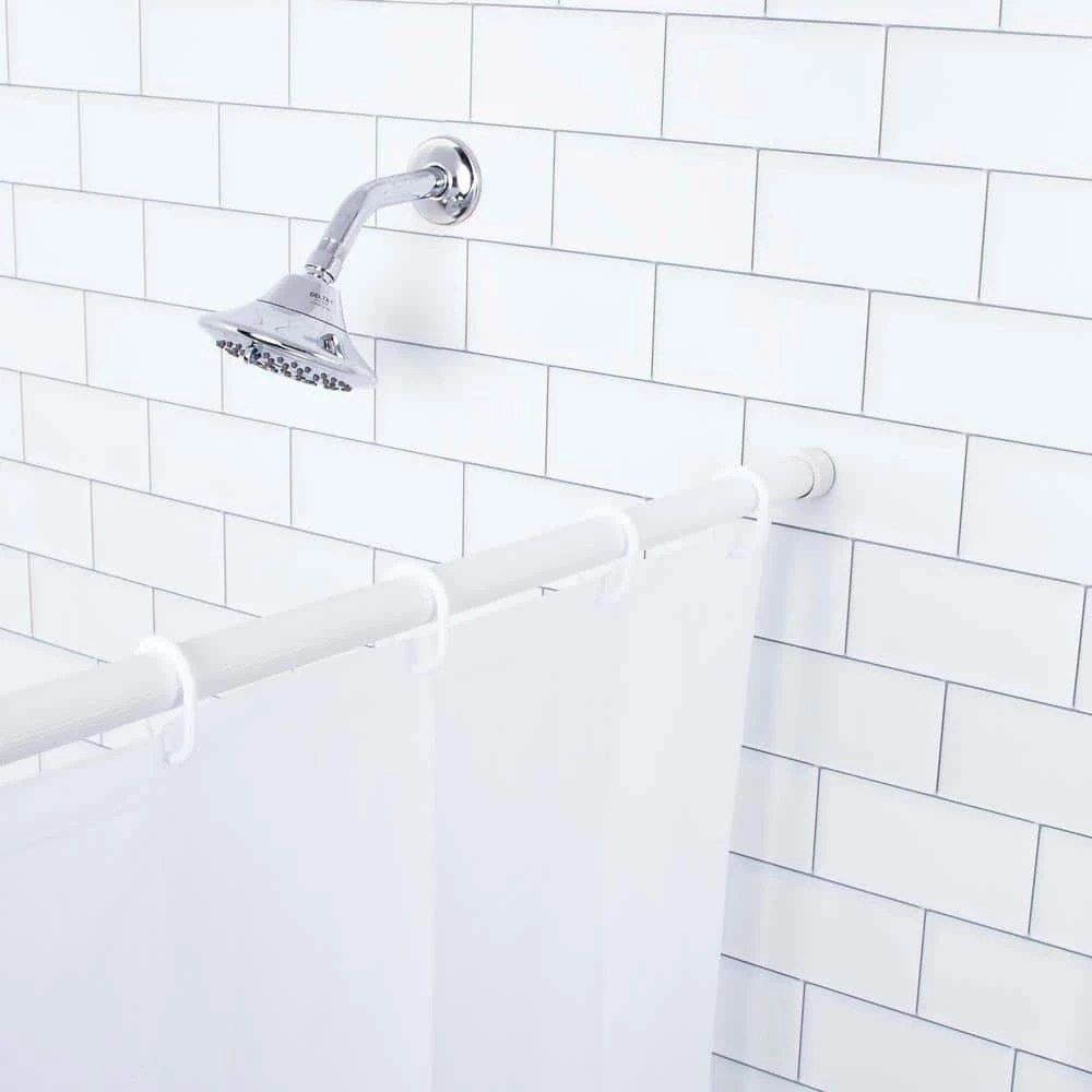 The Home Decorators Spring Tension Utility Rod is easy to install without tools. Use it as a shower curtain rod in standard and oversized bathtubs, or for added storage in closets, laundry rooms, and more. Made of heavy-duty steel, this utility rod is coated with a chip resistant material to prevent rust over time. The non-slip, non-scratch end caps mean no damage to your wall or tile, making this a good solution for rentals or other temporary installments. The end caps include ring locks to keep your shower curtain against the wall, preventing drafts. To install: Extend rod 1-1.5 in. beyond the width of your shower opening, then compress the ends of the rod together and release into place to secure.