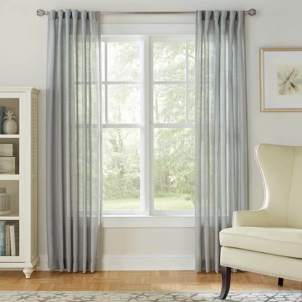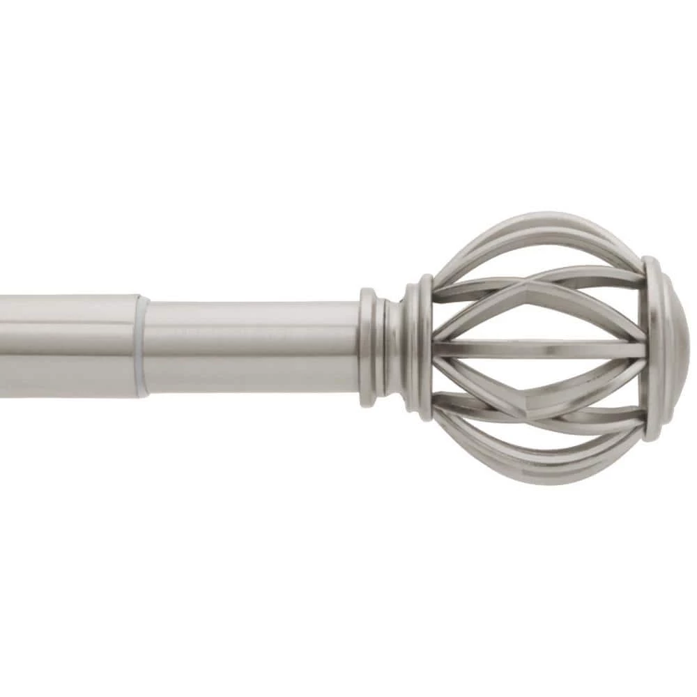 This all-inclusive Brushed Nickel Drapery Rod Kit with cage finials, beautifully adorns your stylish window treatments. Featuring a versatile finish that complements a variety of decor styles. This complete curtain rod kit includes a 72 in. -144 in. telescoping pole, two 1 in. finials, brackets, and mounting hardware for a quick and easy installation.