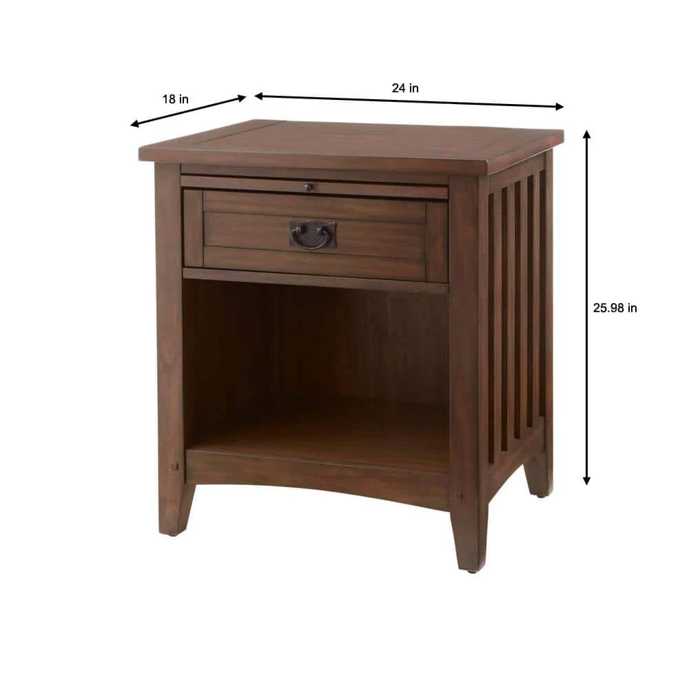 This timeless walnut one drawer nightstand features unique paneling that is sure to stand out in any bedroom. The simple and clean design is ideal for bringing a natural element to your space. The nightstand features one small drawer for organizing bedroom storage and one open shelf for displaying decor. The classic hardware is included.
