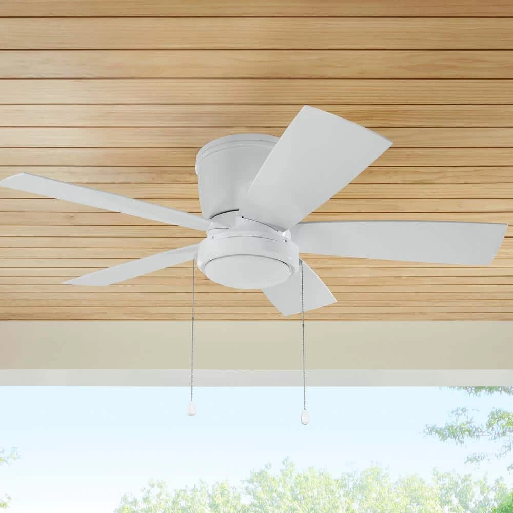 The Arleigh 44 in. LED outdoor white ceiling fan has a great design to compliment both indoor and outdoor areas. With its low profile height, it will accommodate rooms with low ceilings. The 20-Watt Samsung LED light source will give you ample warm white light and is also dimmable. This fan is wet rated so it can be installed in direct contact with the weather elements giving you peace of mind for many years.