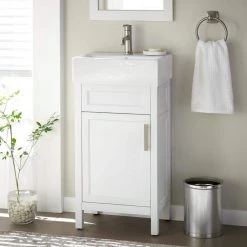 Elevate the look of your space with this Arvesen 18 in. W x 12 in. D Vanity in White with Ceramic Vanity Top in White with White Sink. It comes with premium features like a soft close drawer and door. The white finish and white ceramic sink basin add an elegant touch.