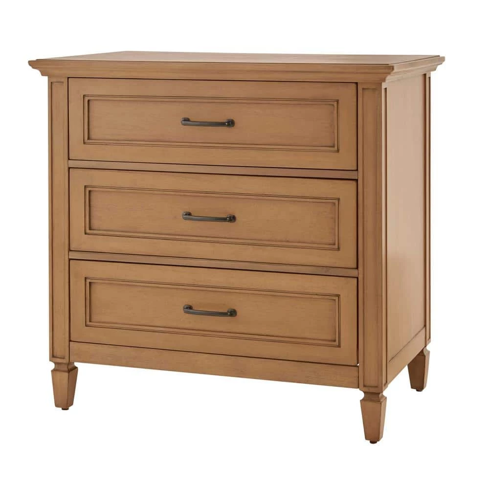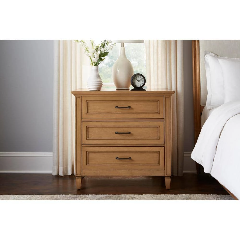 Bring depth to your bedroom with this Bonawick mahogany wood brown patina three-drawer nightstand. The patina brown finish creates fun texture to complement your industrial or rustic decor style, while a reliable wood construction supplies a sturdy spot to set your drink, books or a lamp. Including three generous drawers, this Bonawick mahogany wood brown patina three-drawer nightstand offers plenty of room to keep your nighttime necessities close at hand.