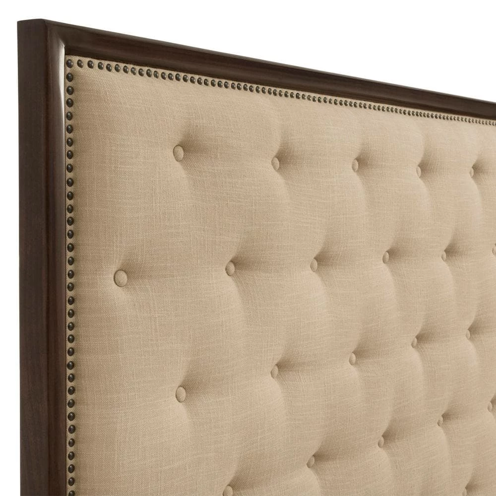 Give your bedroom an elegant makeover with the Bonterra Chocolate Queen Bed from the Home Decorators Collection. It features an upholstered headboard with performance fabric that offers premium-grade comfort. This sturdy queen-sized bed is made of wood for durability and features an attractive chocolate finish to complement a modern-style bedroom decor.