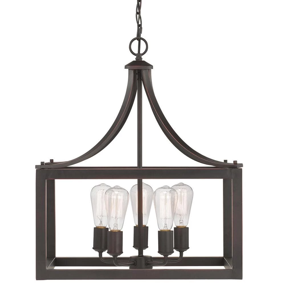 A fun and fresh five-light pendant inspired by nautical accents. The open frame is popular in a variety of today’s home designs and is finished in a Distressed Black finish. Pendants can be used in lieu of chandeliers for creative design schemes, displayed individually or paired in groupings over kitchen islands, dining room tables and in foyers.