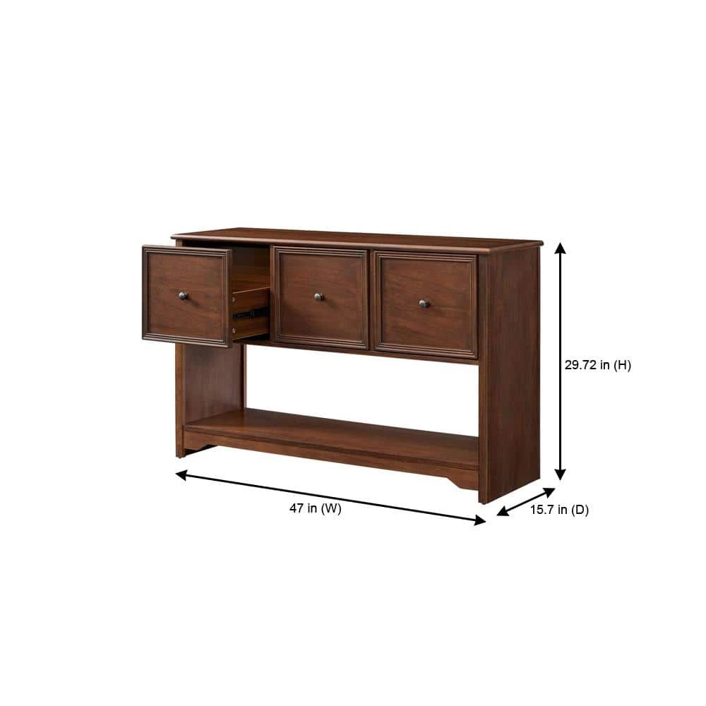 - Three drawer credenza: 29.72 in. H x 47 in. W x 15 in. D