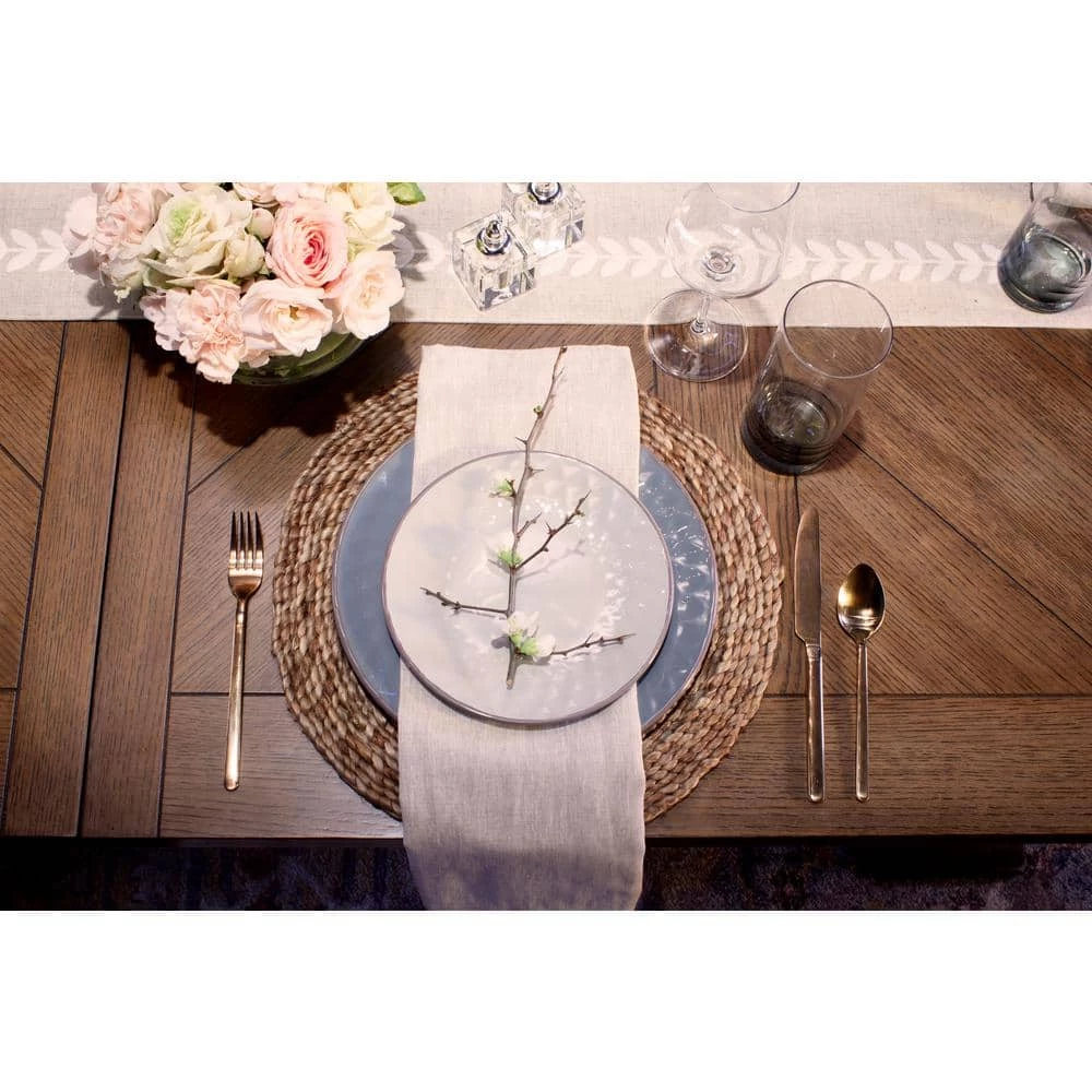 Contemporary shapes and a unique copper finish sets your table for everyday dining with the Home Decorators Collection Brenner 20-Piece Flatware Set with service for four people. This set includes 4 dinner forks, 4 dinner knives, 4 dinner spoons, 4 salad forks, and 4 teaspoons with rounded handles and a copper-finish. This flatware set is dishwasher safe, but you should avoid using citrus-based or acidic detergents in order to preserve the color and finish.