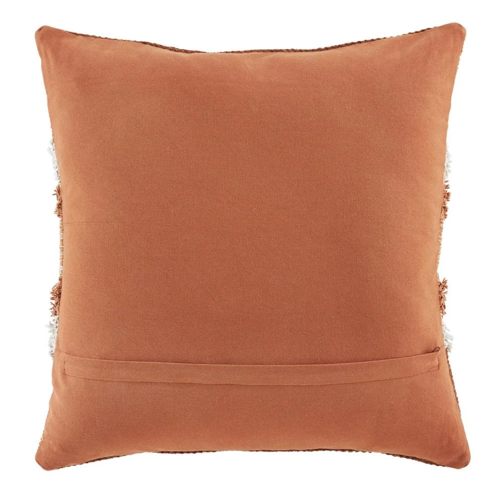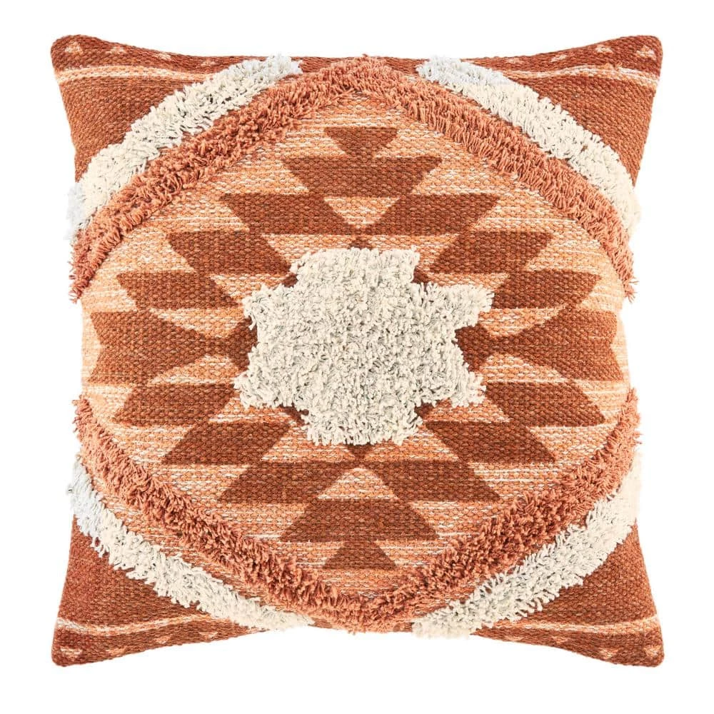 Add a touch of rustic elegance to your home with our Home Decorators Collection Throw Pillows. The meticulously woven construction of this square standard pillow boasts durability and will provide natural charm into your decor space. Featuring a burnt orange geometric shag design, this square throw pillow is perfect for coordinating with other decorative pillows and pieces. Both the decorative cover and poly-fill insert is included, and the zipper closure offers easy removal for added convenience. For best results, spot clean only.