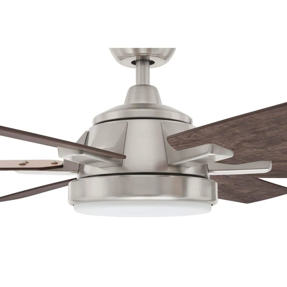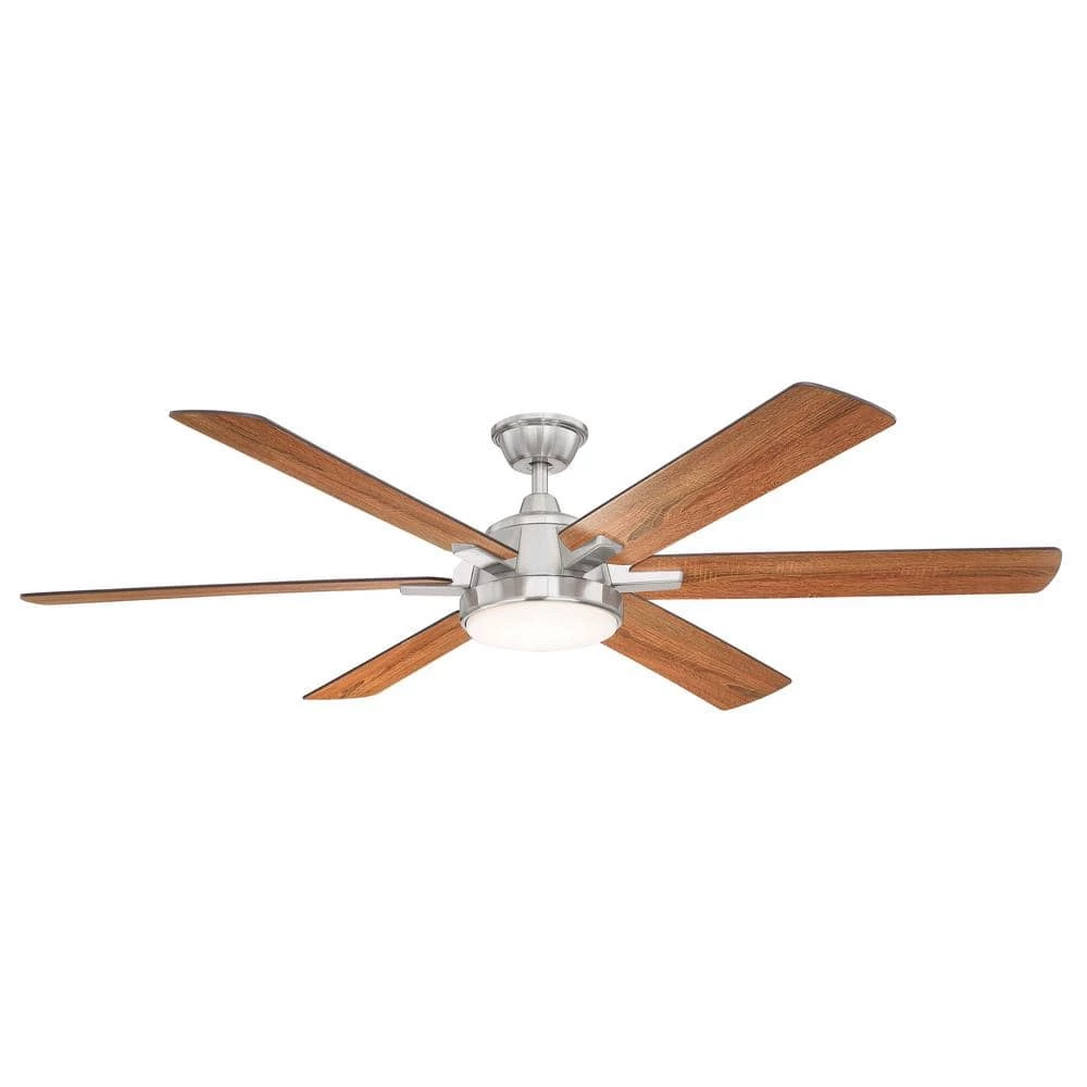 The Carden 66 in. LED brushed nickel ceiling fan is very impressive with its 6 blades with rotating housing. It also uses a DC motor which is the most energy efficient motor available which is up to 70% more efficient than standard AC motor fans. Also uses a 25-Watt LED light source that will last for many years. The hand-held remote control will offer many features such as speed control, light dimming, random breeze and a timer if needed. This fan comes with a lifetime motor warranty.