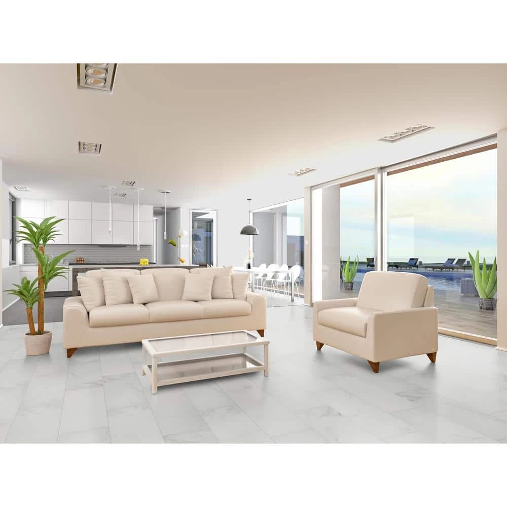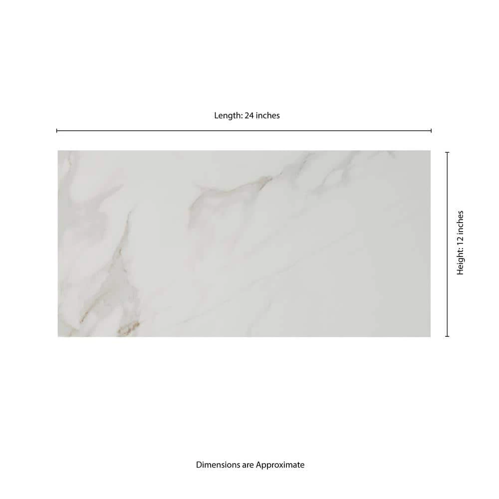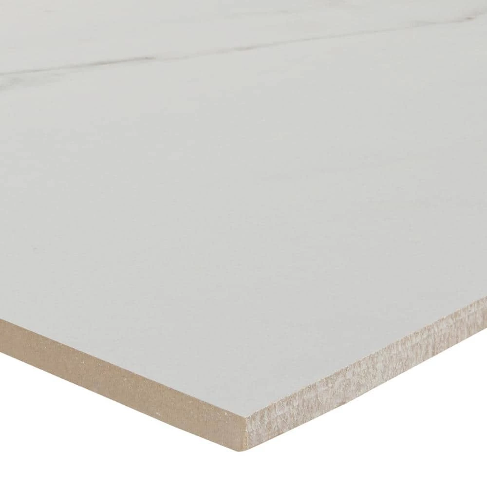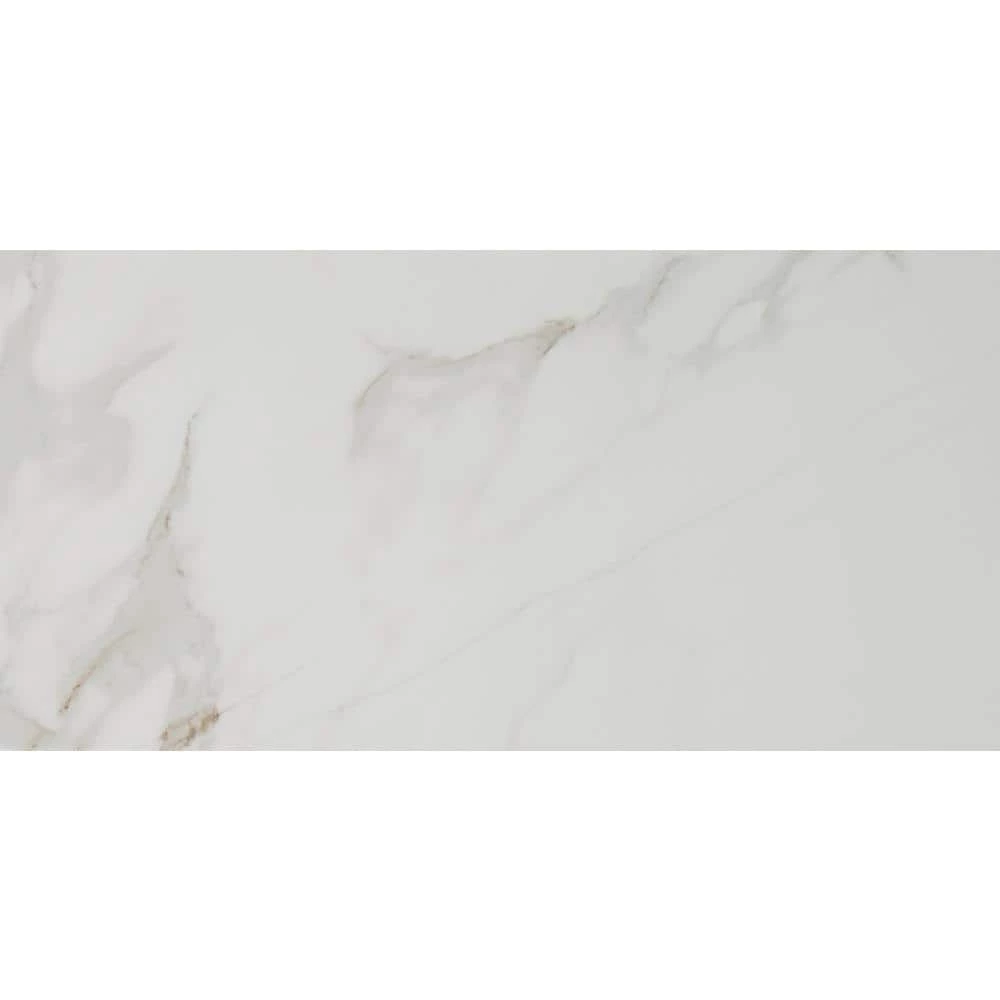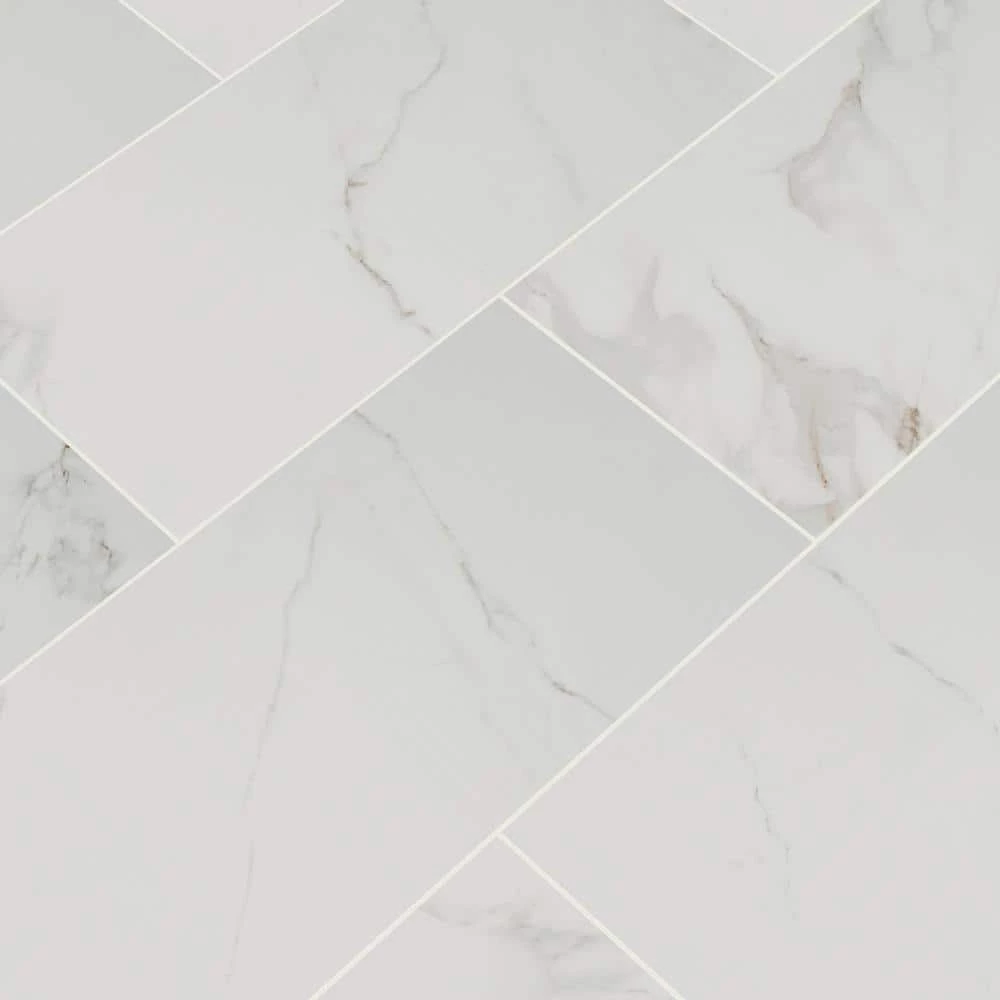 Incorporate a touch of style into your space with the Home Decorators Collection Carrara 12 in. x 24 in. Polished Porcelain Floor and Wall Tile. This elegant white rectangular tile blends the look of natural stone in a porcelain tile and adds class to contemporary aesthetic with a high sheen polished surface to help brighten your decor. Suitable for medium-duty commercial or residential floors and walls with minimum maintenance, install this tile to incorporate a distinctive personal signature in a wide variety of designs and patterns. Use matching trim tile or a combination of field tile for the design that best suits your space and preferences.