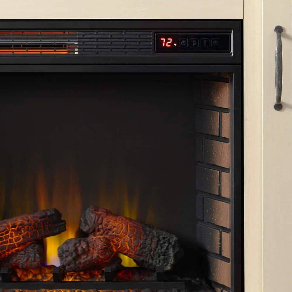 This media console with electric fireplace was designed to add ambiance and warmth to your home. Sliding doors reveal the 28 in. infrared quartz electric fireplace. Through infrared heating technology, the natural humidity in your home is maintained for comfortable heat that doesn’t dry out the room’s air. Providing supplemental zone heating for up to 1,000 sq. ft. and showcasing stunning flame effects, this electric fireplace is sure to create a welcoming environment. Spectrafire flame effect technology offers 3 blue and 3 amber effect options to create your ideal fire, displayed on a realistic log set and ember bed. The flame effects can be used with or without heat for year-round enjoyment. Glass front firebox stays cool to the touch for use around children and pets. Change the settings easily using the control panel on the unit or with the included remote control. The center media shelf and side cabinets include pass through holes for your media components while adjustable shelves offer customizable storage for all your entertainment accessories. This TV stand accommodates most flat screen TVs up to 80 in. or up to 155 lbs. Tip restraint hardware is included to help prevent accidents and damage.