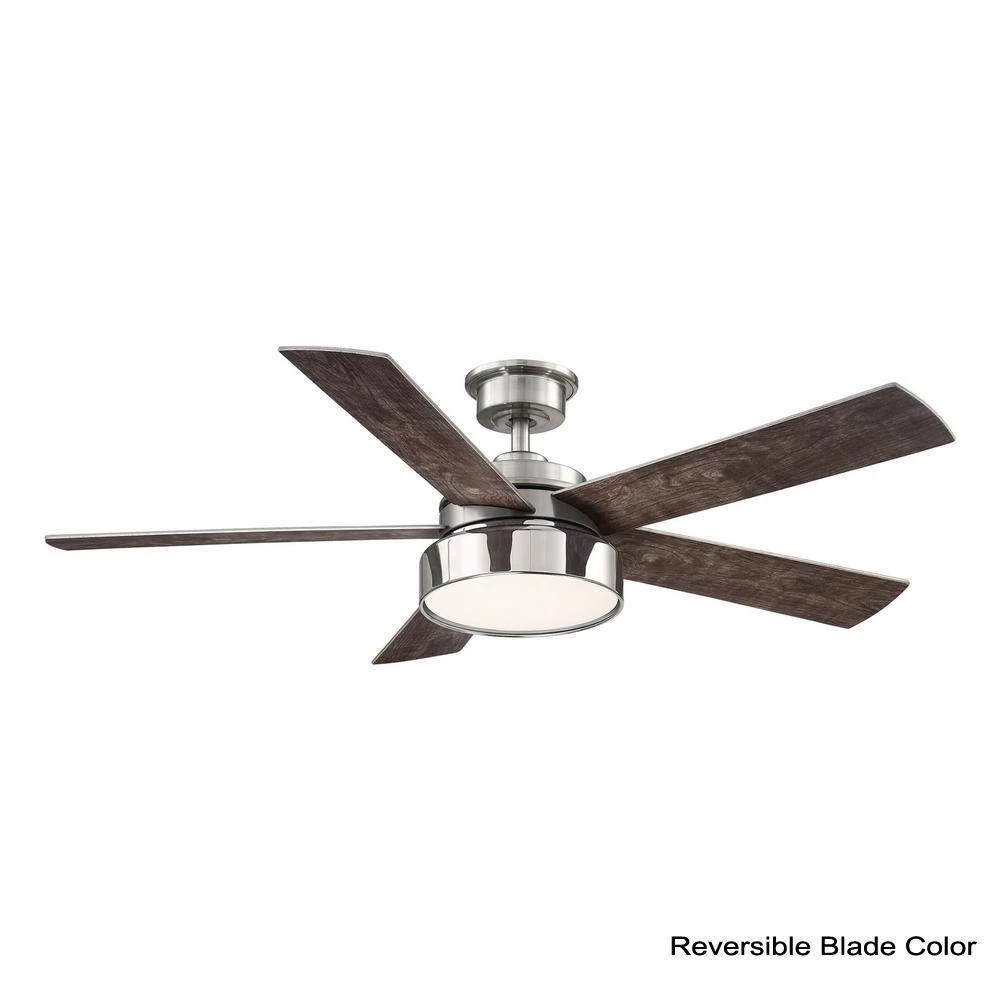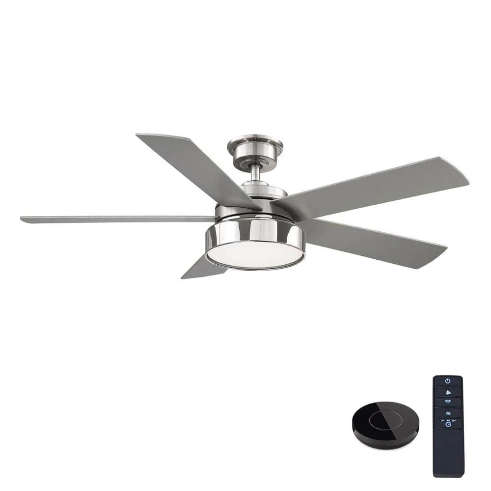Easily integrate fan and light control into your Amazon or Google smart home system with this Bond ceiling fan bundle. The Bond remote hub pairs with Alexa or Google Home to add voice control convenience to your ceiling fan. The included Bond remote hub is shipped separately. The 52 in. LED Brushed Nickel and Polished Nickel Ceiling Fan has a 2-tone finish that is very eye catching and provides a clean polished look. There reversible seasoned wood and silver blades allows you to coordinate with your style and decor of your room. The energy efficient 18-Watt Samsung LED light source will allow you 50,000-hours and is dimmable. The handy remote control will operate the light and speed functions and includes the batteries.
