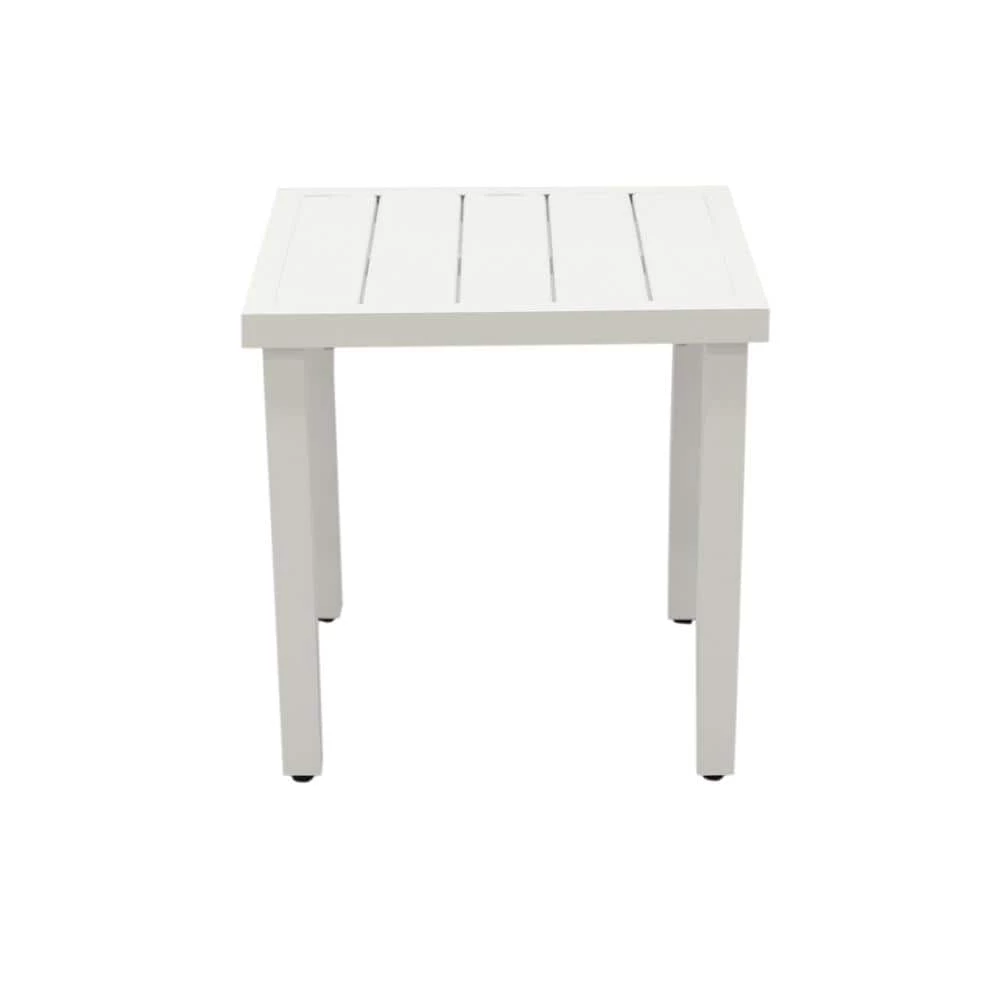 Emerald Pointe commercia grade Aluminum Patio End Table is the perfect accent piece for your backyard or garden. The slatted table top is strong and durable. Place this table next to a favorite chair or chaise lounge to create a spot to place your drink, drink of a good book while relaxing outdoors.