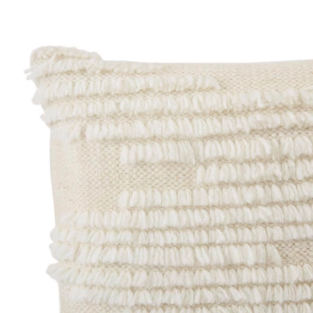 The Home Decorators Cream Fringe Textured Throw Pillow features a compelling global inspired design brimming with elegance and grace. The perfect addition for any home, this pillow will add eclectic charm to any room. The meticulously woven construction boasts durability and will provide natural charm into your decor space. Featuring a cream fringe textured front with a solid color back, this square throw pillow is perfect for coordinating with other decorative pillows and pieces. Both the decorative cover and poly-fill insert is included, and the zipper closure offers easy removal for added convenience. For best results spot clean only and line dry.