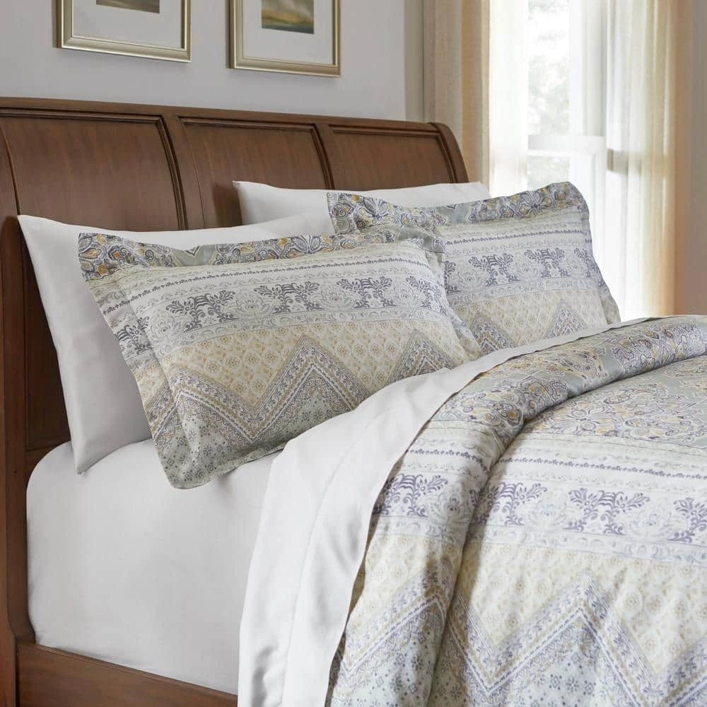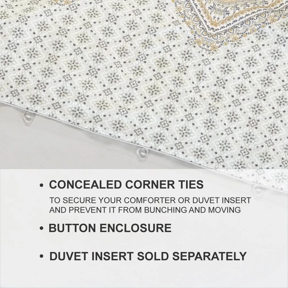 Bring a classic look to your bedroom suite with this Home Decorators Collection Delilah 3-piece Medallion King Duvet Cover Set. Featuring a King-size cover and two pillow shams, this complete set lets you create a complete look. Warm 300-thread-count cotton construction offers year-round comfort and is machine-washable for effortless care. Featuring a reversible design that adds to your options, the Delilah duvet cover set boasts a traditional pattern in neutral tones to enhance your bedroom furnishings. STANDARD 100 by OEKO-TEX.