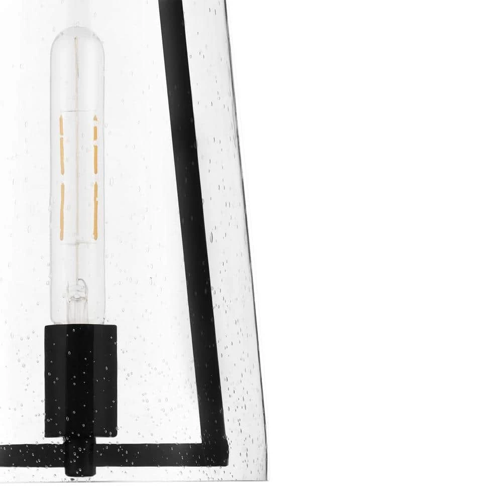 The Desmond 8-inch elongated Glass pendant light in Black finish will soon become your favorite fixture in the house. Clean lines, bold metal finishes, and warm Smoke Seedy Glass all make for a Modern Industrial style that will work with most home decors. Extendable to a hanging height of up to 60.5 inches, this pendant fixture is a flexible lighting solution for dining areas, kitchens, entryways, hallways, and more. Assembly and installation are simple with all necessary hardware included. Be sure to check out the other finishes and fixtures from the Desmond collection.