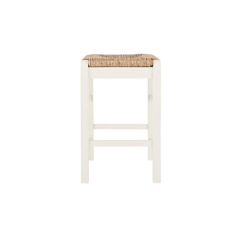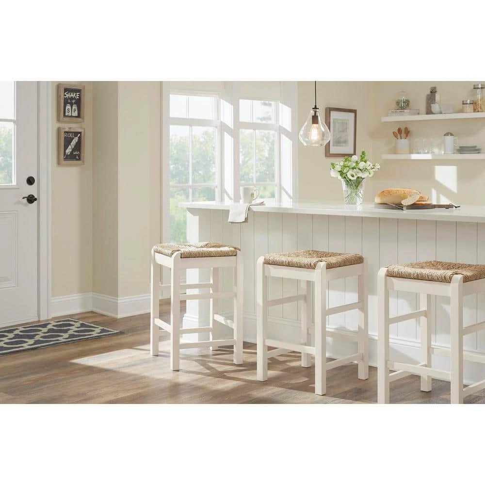 Pull up to the counter with the Home Decorators Collection Dorsey farmhouse style stool. The square counter stool is crafted of wood and finished in a soft ivory hue. Its thickly woven rush seat is both comfortable and inviting.
