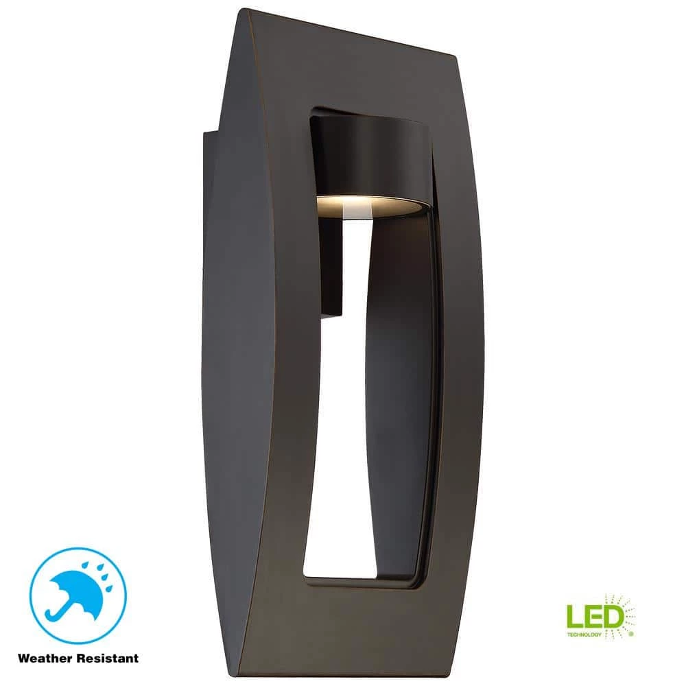Home Decorators Collection energy saving technology introduces new LED outdoor wall mount lanterns for a beautiful illumination with an environmental advantage. The contemporary style of this lantern complements the exterior decor of transitional/contemporary styled homes detailed with oil rubbed bronze finish with gold highlights. The LED module virtually eliminates maintenance. The Home Decorators Collection is easy to install and is sure to be a compliment to the exterior of your home.