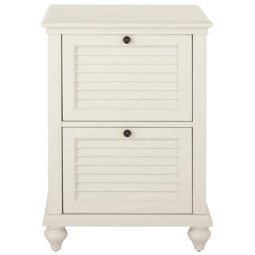 The Hamilton 2-Drawer File Cabinet provides stylish storage anywhere you need it. Two spacious drawer are perfect for storing legal-and letter-sized documents, making it super easy to stay organized. A classic white finish blends seamlessly with most decors. Complement this storage cabinet with home office furniture that features similar louvered details as well as some lovely, traditional-style art.
