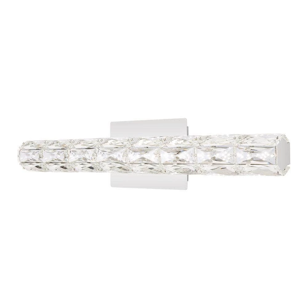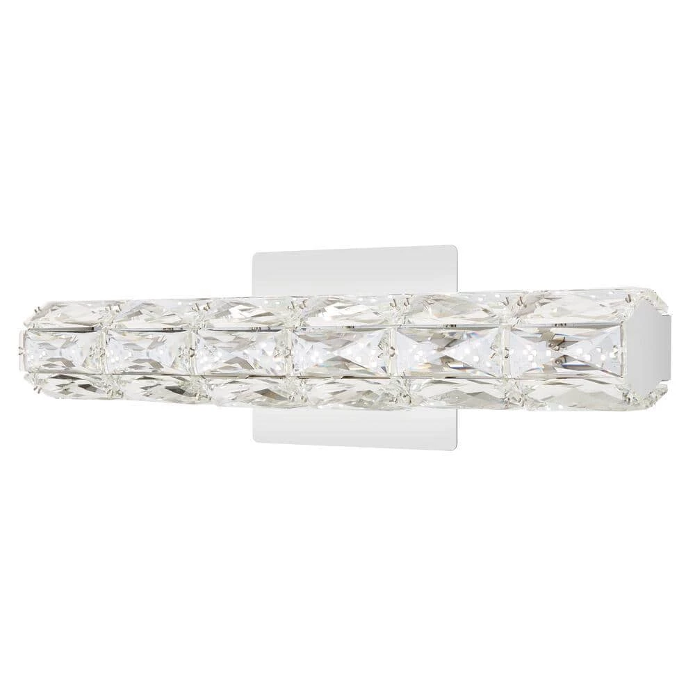 The Keighley Collection from Home Decorators Collection offers modern, crystal shaded interior lighting for every room of the house. The Keighley LED bathroom vanity light features a polished chrome finish and elongated 24 inch linear shade made of glamorous crystal plates. Light from the integrated LEDs sparkles brightly out from the shade while the polished chrome reflects the light for even brighter illumination. The integrated LED module is low maintenance and means you will never have to change bulbs for the life of the fixture. This 24 inch vanity bar is the largest in the collection and is ideal for use over medium to large sized sinks and mirrors in bathroom and powder rooms. For coordinating crystal lighting, shop the Keighley Collection.