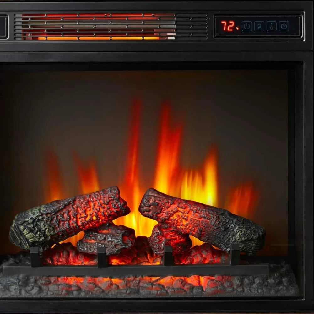 Get a modern Farmhouse look with this sliding barn door TV stand with integrated USB charging. The Kerrington is a must-have TV stand with electric fireplace for TVs up to 65 in. and 60 lbs., A concealed charging station built into the media bay helps you keep devices charged with 2 USB ports. The 2 sliding barn doors roll to the center for access to 2-side cabinets concealed by touch latch doors. Safer Plug and Safer Sensor fire prevention technologies gives you peace of mind. Safer Plug monitors the temperature of the plug and shuts off automatically if unsafe conditions arise. Safer Sensor alerts you when the heater is obstructed and will automatically shut off to prevent damage. Spectrafire 3D flame effect technology offers 3 blue and 3 amber effect options to create your ideal fire, displayed on a realistic log set and ember bed. The flame effects can be used with or without heat for year-round enjoyment.