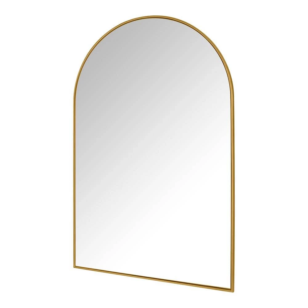 The Large Arched Gold Classic Accent Mirror from Home Decorators Collection features a dome-shaped design that complements a classic style of decor. Its composite frame is gold to match the color scheme in any room of the house. With pre-installed D-rings on the back, this elegant mirror can be hung up securely without much hassle. Wipe the reflective surface with a soft, dry cloth to keep it clean.
