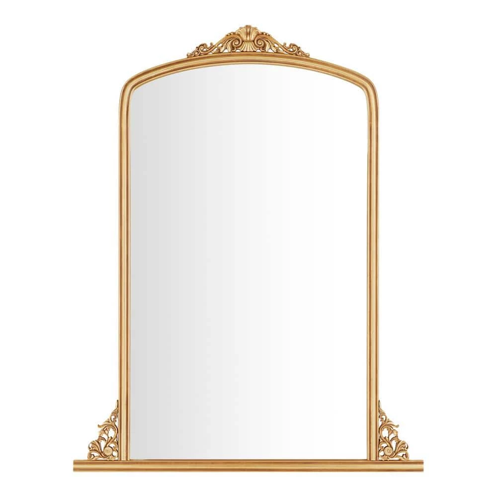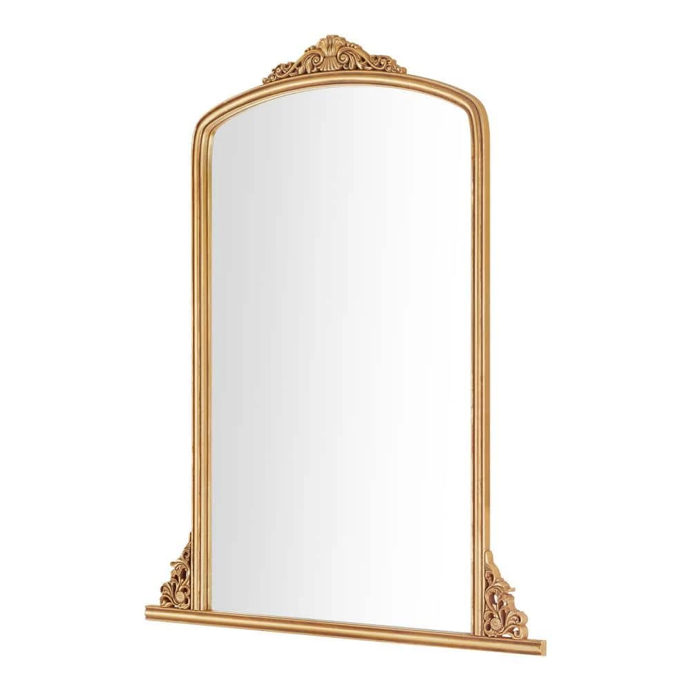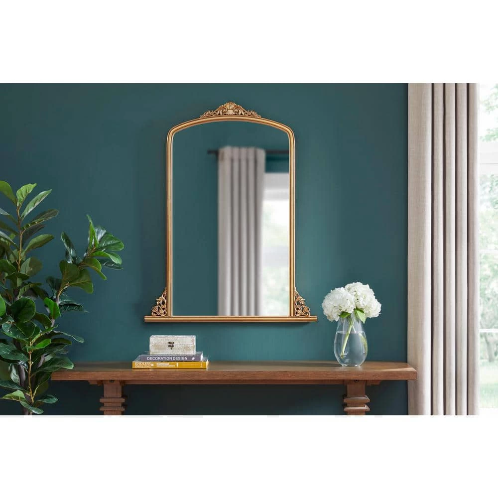 Elevate your home’s elegance with this Home Decorators Collection Classic Arched Vintage- Style Gold Framed Mirror. The glamorous gold-foil finish gives your bedroom or hallway a touch of glimmer, while the generous size makes an eye-catching statement. A reliable wood construction supports continued display. Embellished with decorative accents, this Home Decorators Collection classic arched vintage-style gold framed mirror brings a look of luxury to your living space to complement your vintage decor.