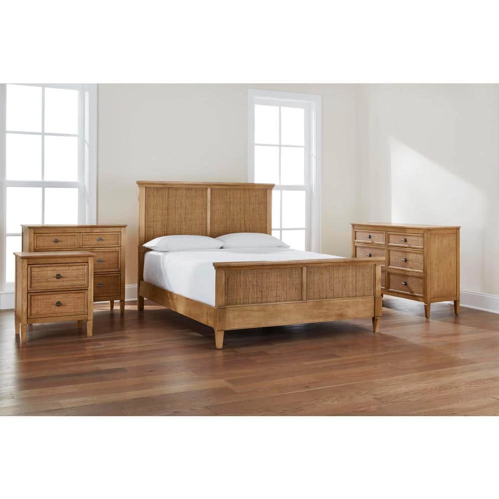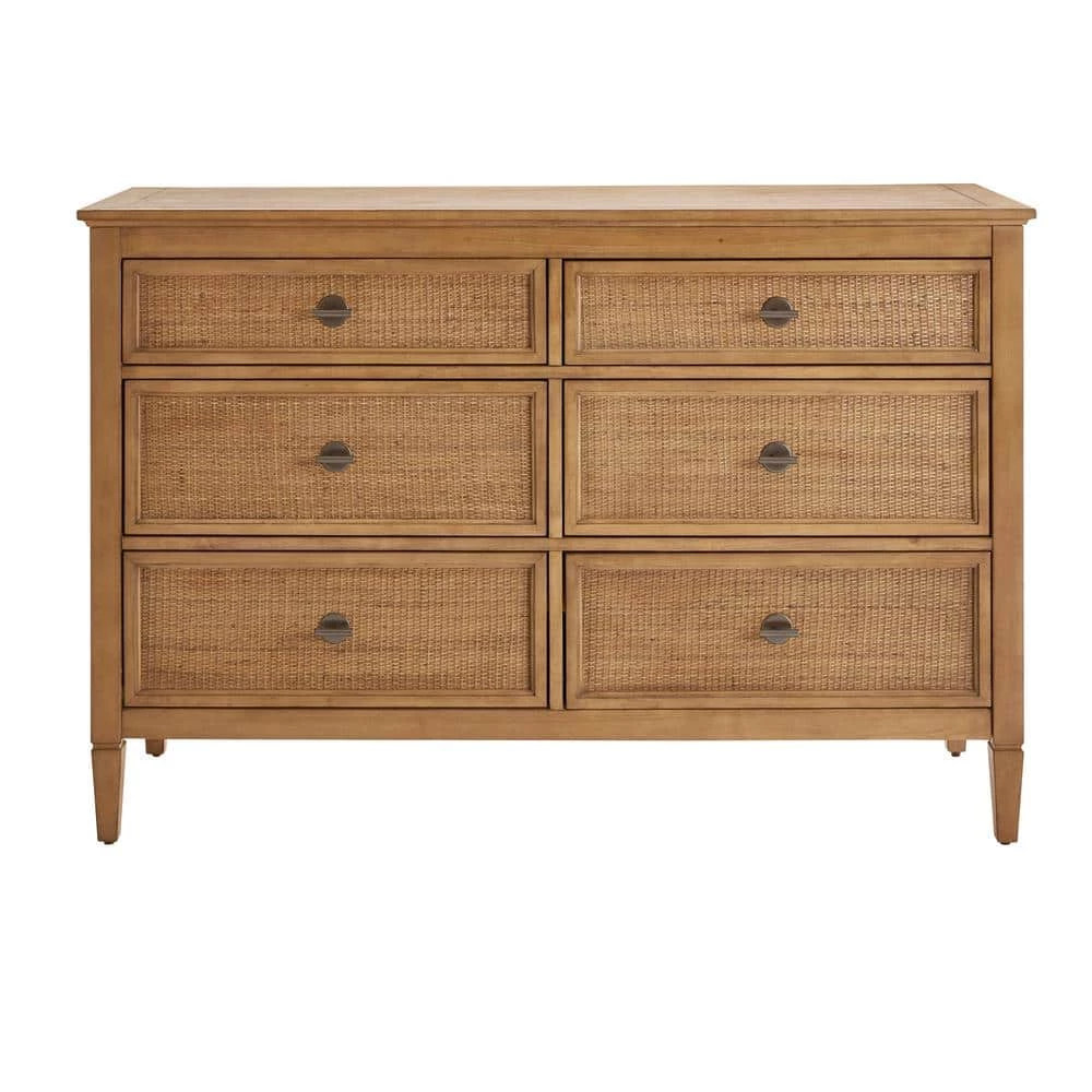- Updated Marsden 6-drawer dresser with woven rattan cane drawer fronts on all six drawers