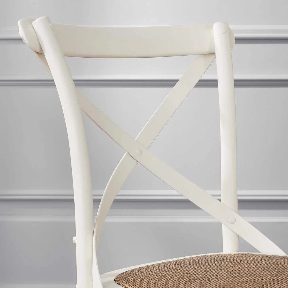 Whether farmhouse, rustic or traditional, our Home Decorators Collection Mavery dining chairs complement the look in a totally chic way. The open X-back and natural woven rattan seats have an airy feel reminiscent of chairs seen in European cafes. Sturdy wood frame is finessed with a soft ivory finish.