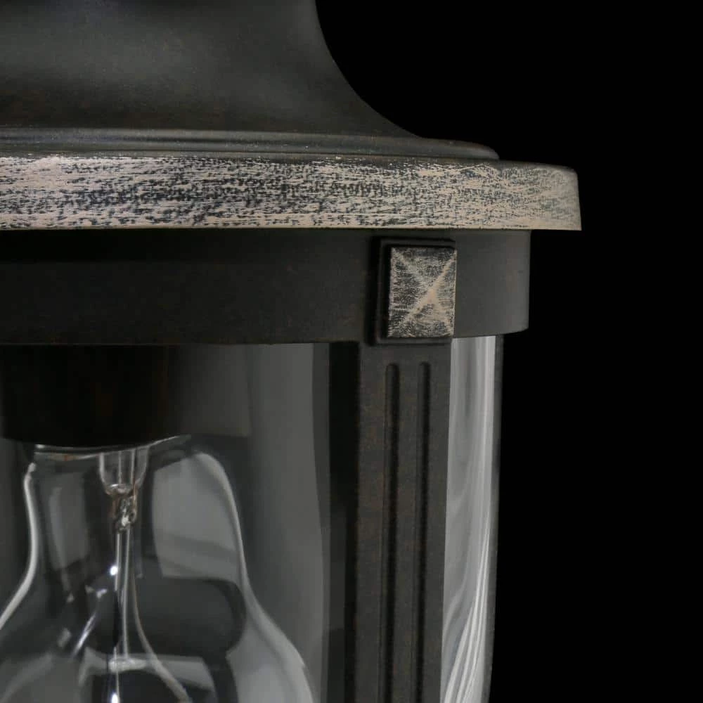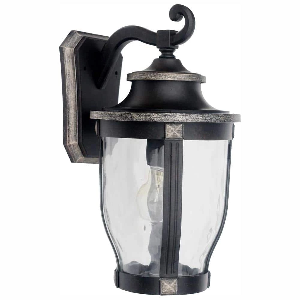 This beautiful wall mount lantern from Home Decorators Collection is sure to brighten the look of any home. The hand applied bronze finish with gold highlights will illuminate as well as decorate. The clear hammered glass augments the light from the 60-Watt bulb (not included). Die-cast aluminum construction ensures long-lasting beauty and durability.
