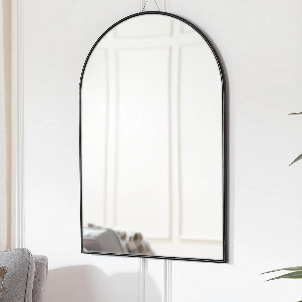 The Home Decorators Collection Medium Arched Accent Mirror adds style and functionality to your home. It has an antique design with a black finish and domed shape that will perfectly complement your living room or bedroom. It’s easy to hang with D-rings on the back and it’s simple to clean with glass cleaner and a cloth.