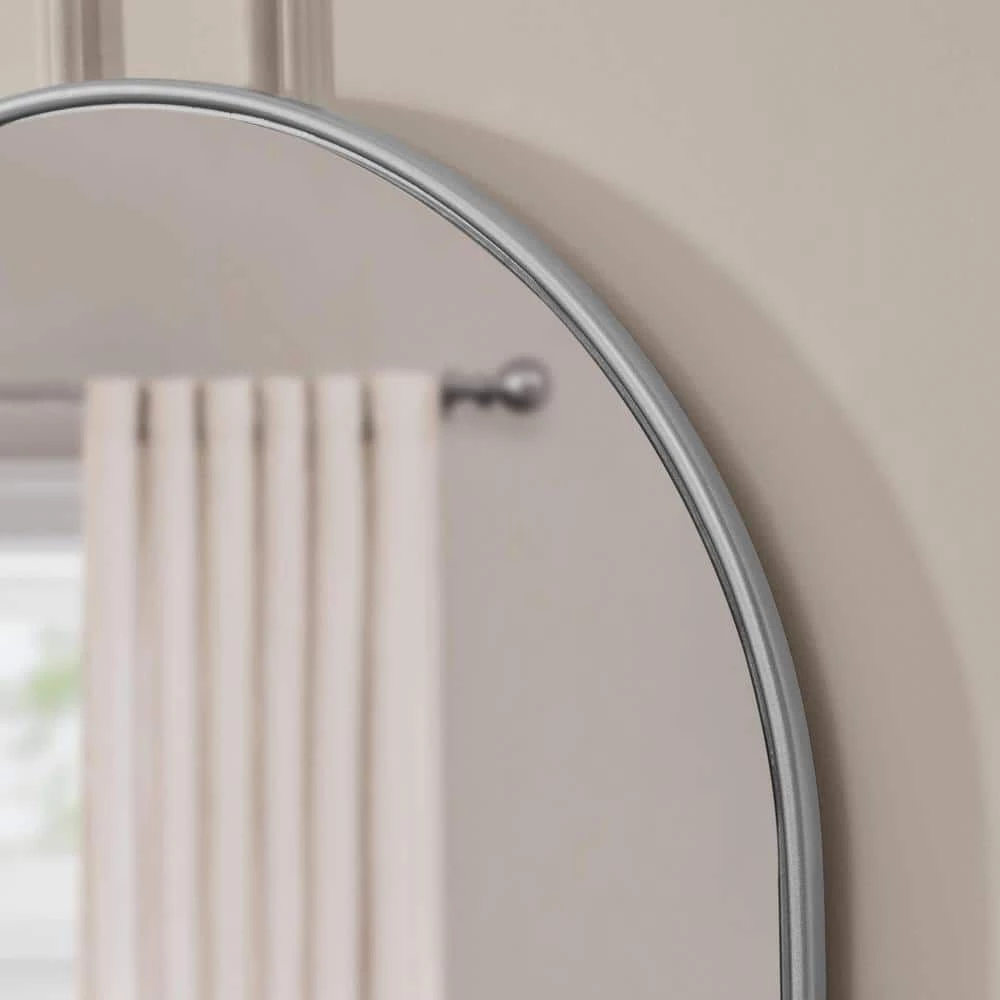 The Medium Arched Silver Classic Accent Mirror from Home Decorators Collection features a dome-shaped design that complements a classic style of decor. Its composite frame is silver to match the color scheme in any room of the house. With pre-installed D-rings on the back, this elegant mirror can be hung up securely without much hassle. Wipe the reflective surface with a soft, dry cloth to keep it clean.