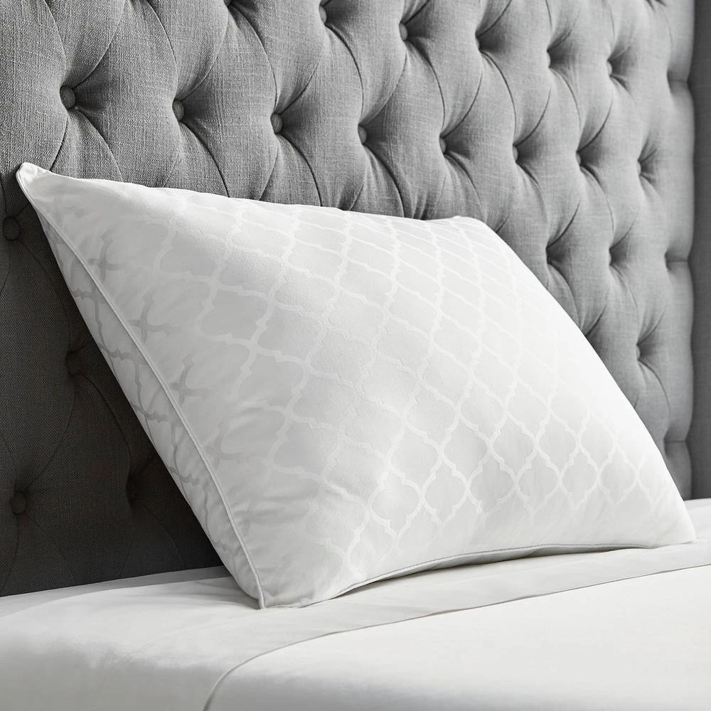 Down alternative polyester fill is perfect for those who want to soft, moldable texture like natural down, but want the hypoallergenic features of polyester. Our medium/firm down alternative pillow is perfect for those who sleep on their back or stomach. The pillow cover is a 350-thread count jacquard weave, adding supreme softness and luxury. We’ve added a unique pattern and beautiful satin piping along the hems to add a touch of elegance. Machine washable for easy care and maintenance. You can be confident in your purchase as this pillow is certified STANDARD 100 by OEKO-TEX, meaning they have been independently tested for harmful substances according to strict scientific criteria that go beyond global legal regulations.