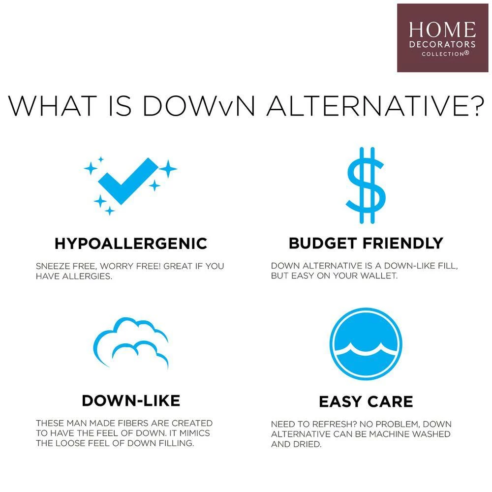 - Luxurious down alternative polyester fiberfill, perfect for those who want the soft and moldable texture of down, and the benefit of hypoallergenic polyester