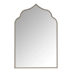 - Arched shape, beaded design, and antique champagne finish of frame complement a classic-style decor