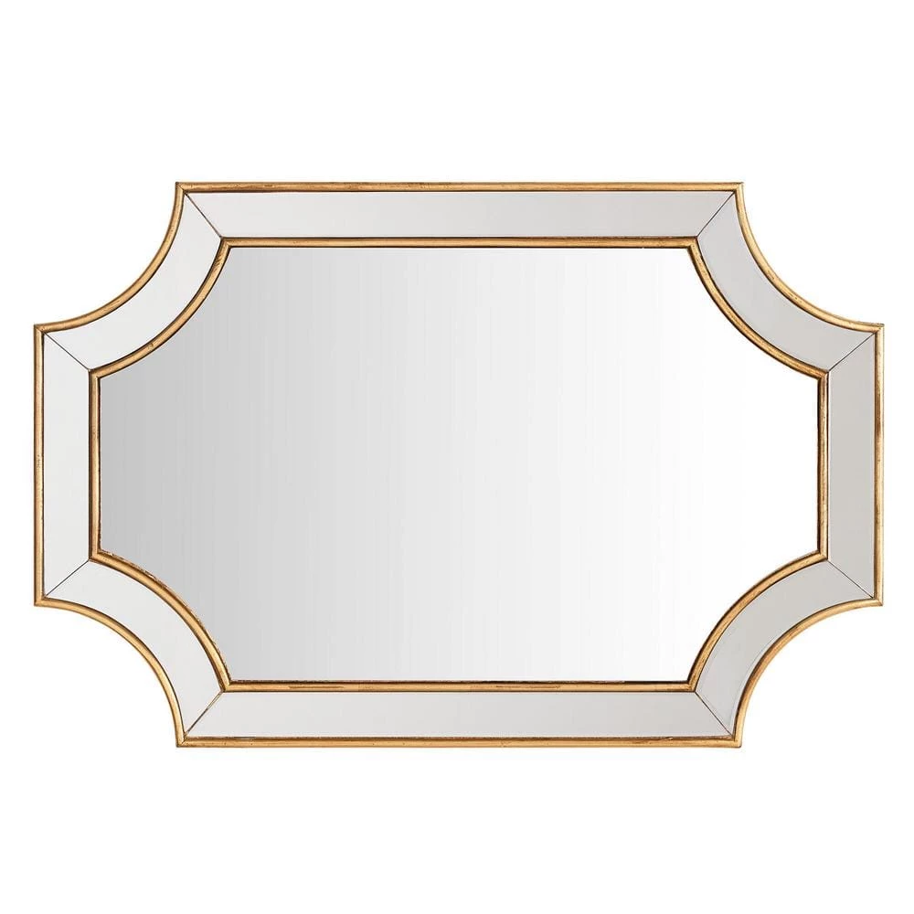 The Home Decorators Collection Medium Ornate Gold Beveled Glass Classic Accent Mirror adds a touch of elegance to your classic-style decor. This beveled mirror with polished edges creates an eye-catching focal point in any room while offering a clear reflection. Its attractive design makes it an ideal gift for weddings, housewarmings or birthdays. The D-rings installed on the back allow for easy hanging and secure placement of the mirror. Use a standard glass cleaner and a soft cloth to wipe dust and dirt off the surface and keep it clean.
