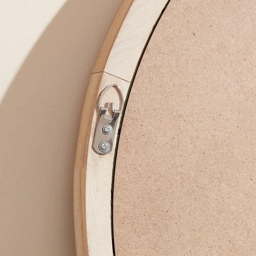 Add a touch of beauty to your entryway or living room with the Home Decorators Collection Medium Round Brown Natural Wood Transitional Accent Mirror. This simple yet elegant natural wooden frame seamlessly blends with any interior decor. The D-ring hooks on the frame ensure effortless installation. The mirror is easy to clean using a dry and soft cloth surface with a standard glass cleaner. This minimalist round mirror makes for an ideal addition to your transitional-style decor.