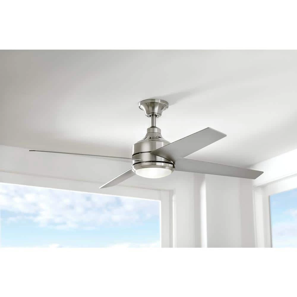 Easily integrate fan and light control into your Amazon or Google smart home system with this Bond ceiling fan bundle. The Bond remote control hub pairs with Alexa or Google Home to add voice control convenience to your ceiling fan. Cool down your home with a contemporary look with the Home Decorators Collection Mercer 52 in. LED Brushed Nickel Ceiling Fan. This 4-blade, 3-speed fan helps move air efficiently, with quiet, wobble-free operation. It offers an integrated light covered by an etched opal glass and includes a 14-Watt LED integrated module. If you’re tired of using the remote control and you want to include your traditional ceiling fan in your automated home system, the Bond is the simplest and quickest way to do so. The Bond Smart Wi-Fi Fan Remote Hub enables you to control your fan, along with the lighting that goes with it. The ceiling fan and BOND hub ship separately.