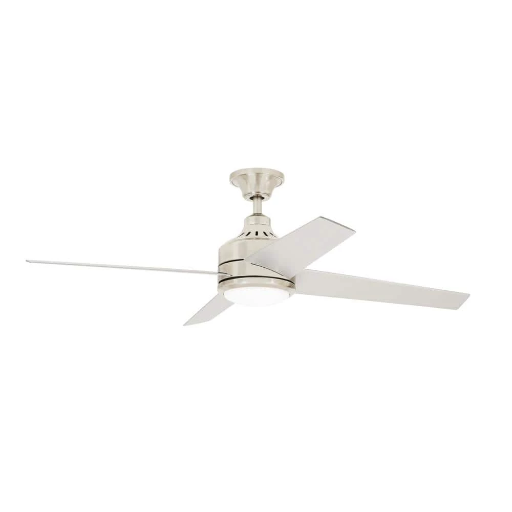Add a contemporary look to your home with the Home Decorators Collection Mercer 52 in. LED Brushed Nickel Ceiling Fan. This 3-speed fan features 4-blades to help move air efficiently, with quiet, wobble-free operation. This fixture offers an integrated light covered by an etched opal glass and includes a 20-Watt LED integrated module. If you’re tired of using the remote control and you want to include your traditional ceiling fan in your automated home system, the Bond is the simplest and quickest way to do so. Bond Smart Wifi Fan Remote Hub, it enables you to control your fan, along with the lighting that goes with it. Bond is compatible with Amazon Echo and Google Home when used. Bond works with Alexa and other compatible smart home products. (Bond sold separately).