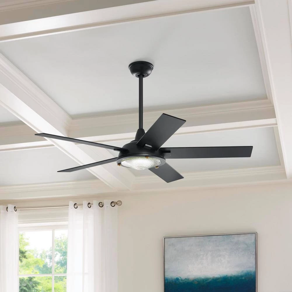 Easily integrate fan and light control into your Amazon or Google smart home system with this Bond ceiling fan bundle. The Bond remote hub pairs with Alexa or Google Home to add voice control convenience to your ceiling fan. The included Bond remote hub is shipped separately. The light kit has a decorative brass knobs around the clear holophane glass and uses a 18-Watt Samsung LED that will last 50,000-hours and is very energy efficiency. The remote control will operate the light and speeds and includes batteries. This fan comes with a lifetime motor warranty. DC motor fans are 70% more energy efficient than AC motor fans (when comparing efficiency (CFM/W) of DC vs AC motors in published FTC Energy Guides for ceiling fans).