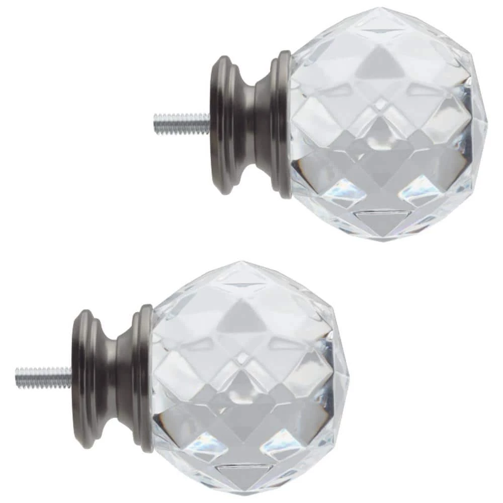 The Mix and Match Series from the Home Decorators Collection offer a range of quality metallic curtain rods, accessories and various finial designs. Packed as a set of 2, these gunmetal faceted crystal sphere finials enhance your interior decor while making a fitting addition to any industrial or loft setting. No tools are necessary as these finials are designed to be directly installed onto a rod set after removing its original finials.