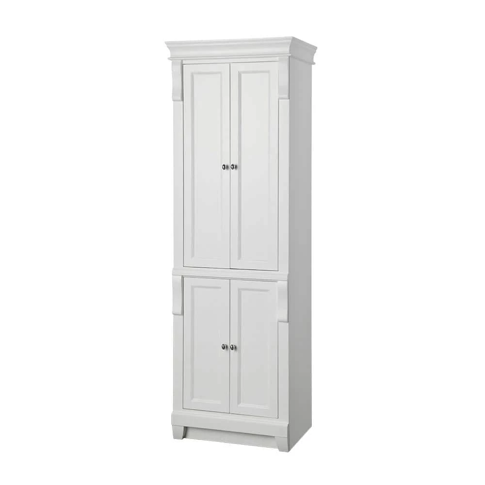 Reflecting the sleek, simple style of the Naples collection by Foremost, this tall, fully assembled Linen Cabinet in White boasts a wealth of storage possibilities. Behind its four craftsman-style doors are three adjustable shelves for complete space customization. Designed to make the most of your vertical space, the cabinet features a bright white finish and sleek chrome hardware, bringing an elegant, stylish touch to any room.