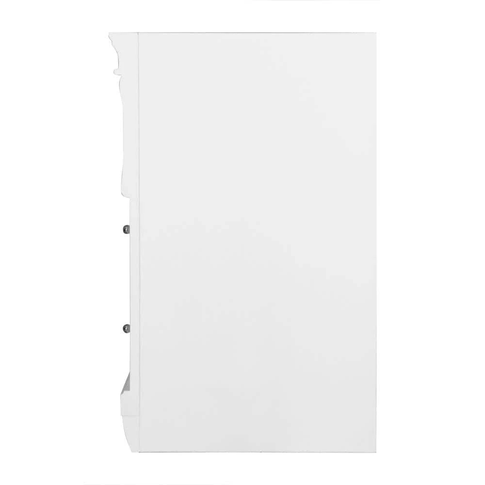Awash with a bright white finish, this 36 in. vanity cabinet is full-bodied and sits flush with the floor. It is an attractive, stately piece with decorative accent boards that give it a splash of pizazz. Left-side double doors and three right-side drawers are equipped with gleaming chrome hardware, further enhancing its elegance. The solid, seamless construction gives homeowners and contractors the sense that it is custom-built, while the generous storage space within accepts bathroom accessories aplenty. Cap this white furniture-style bathroom vanity with a top/sink/faucet combination that ties the room together. Browse the Foremost Naples lineup for a wall mirror or linen/wall cabinet in the same white finish to augment your powder room makeover.